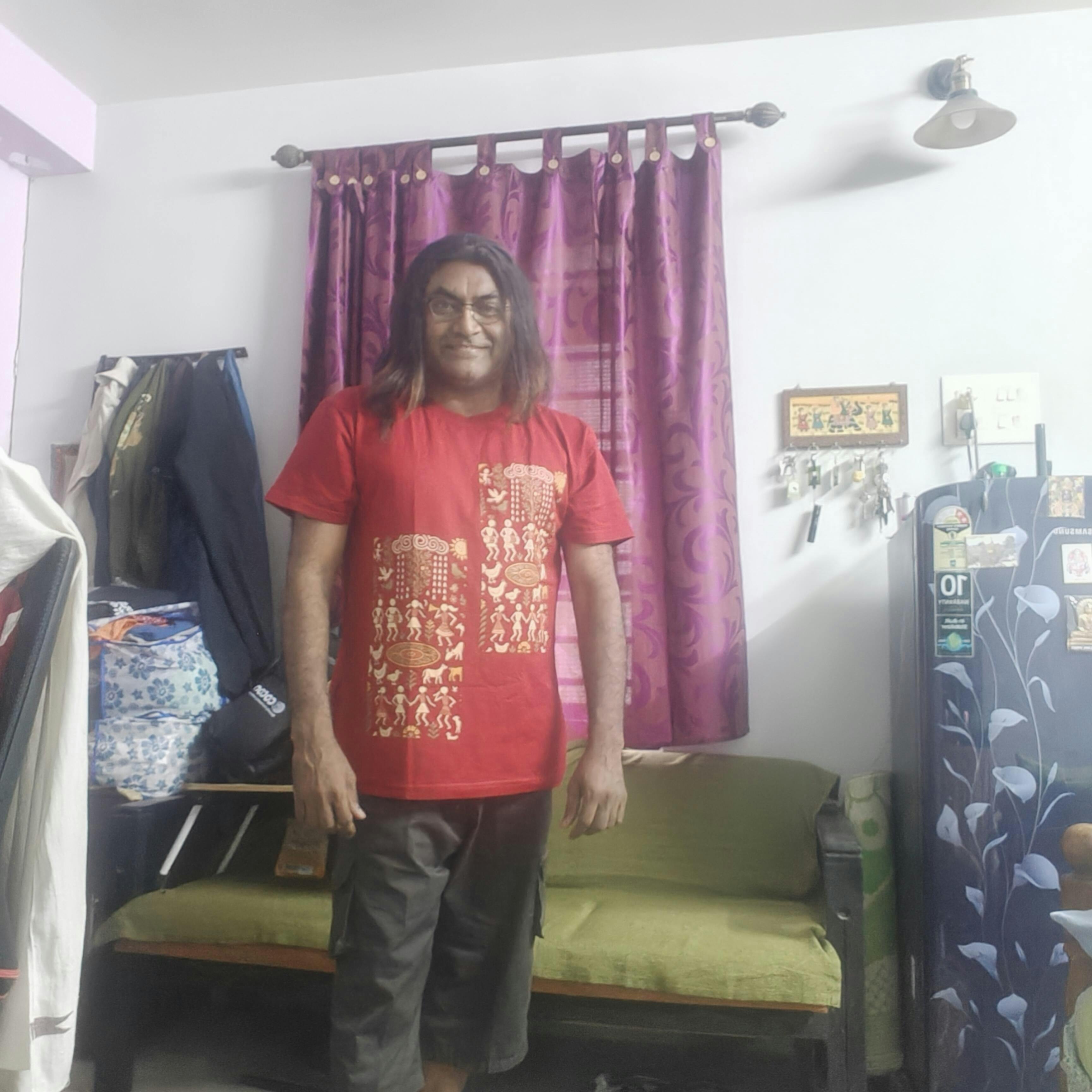 Absolutely loved this red T-shirt! The tribal art design is vibrant, detailed, and gives a classy ethnic touch. The color stands out beautifully and stays bright even after multiple washes. The fit is comfortable and perfect for casual wear or relaxed evenings. The fabric feels soft and breathable — ideal for daily use.